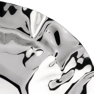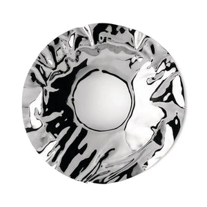 Port basket has been designed by Lluis Clotet, who is especially active in architecture but who has also made a number of interesting designs of objects, was fascinated by the playful crumpling of a tray in silver paper and reproduced the effect in a successful mini-series of trays and baskets, in which the crumpled edge is achieved using a complex technique of cold-pressing in a single operation.