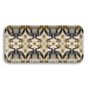 Add a touch of elegance to your home with the Crested Crane Tray by PATCH NYC for Avenida Home. Featuring a stunning mirrored pattern of graceful crested cranes in warm golden and earthy tones, this tray blends artful detail with everyday functionality. Perfect for serving drinks, displaying décor, or simply elevating your coffee table, it brings a sophisticated, nature-inspired charm to any space.