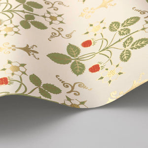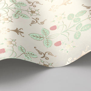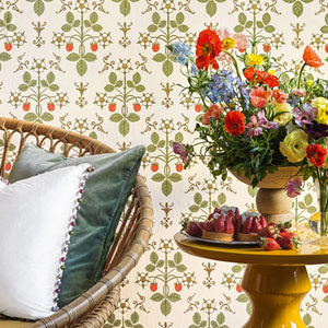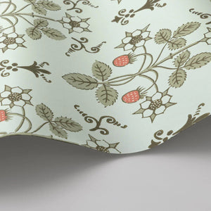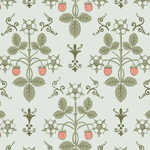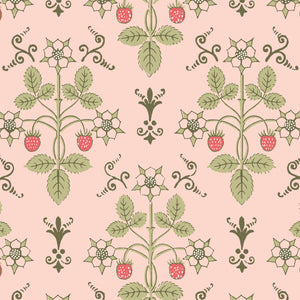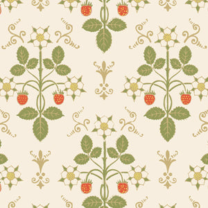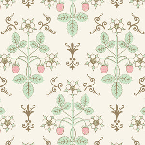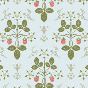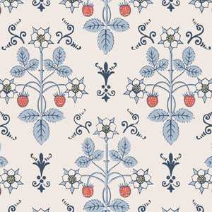 Strawberry, a uniform print, is a soft, organic geometric aesthetic featuring delicate strawberries and flowers. Inspired by a hand-block design from the 1840s, it’s been reimagined in gentle hues that evoke a pastoral charm.