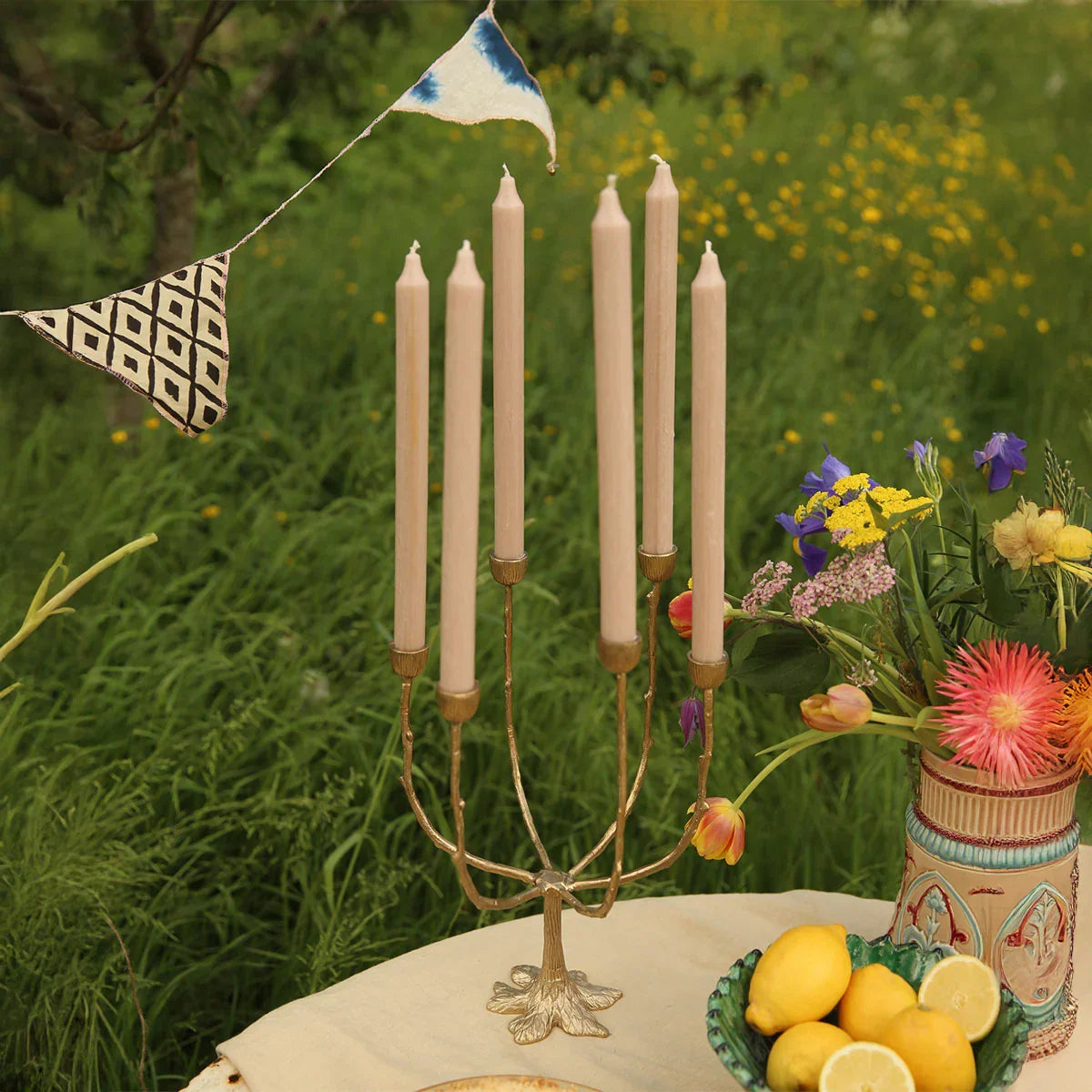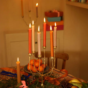 Introducing the Misty Multi Candle Holder with 6 Arms – a captivating masterpiece that redefines traditional candle holders. Meticulously handcrafted with precision and care from 100% recycled brass by our skilled craftsmen in India, this candle holder stands as a testament to the art of handmade excellence.
