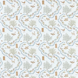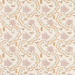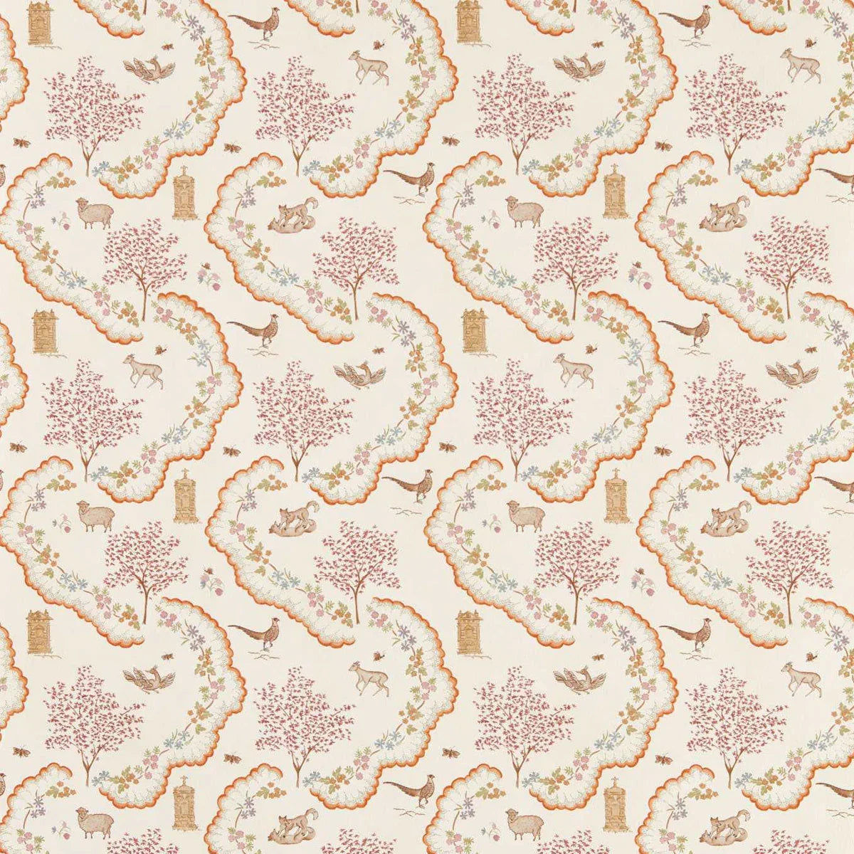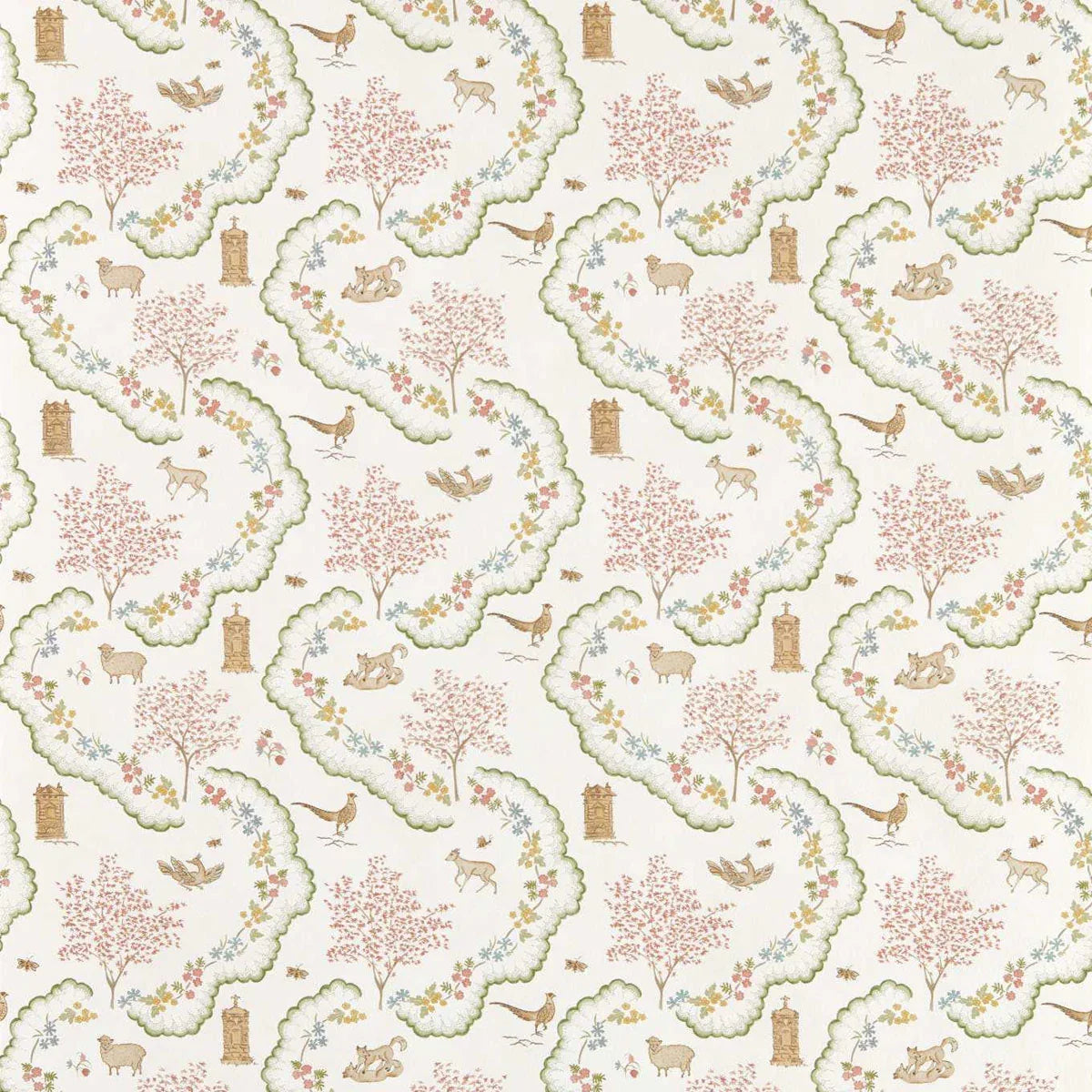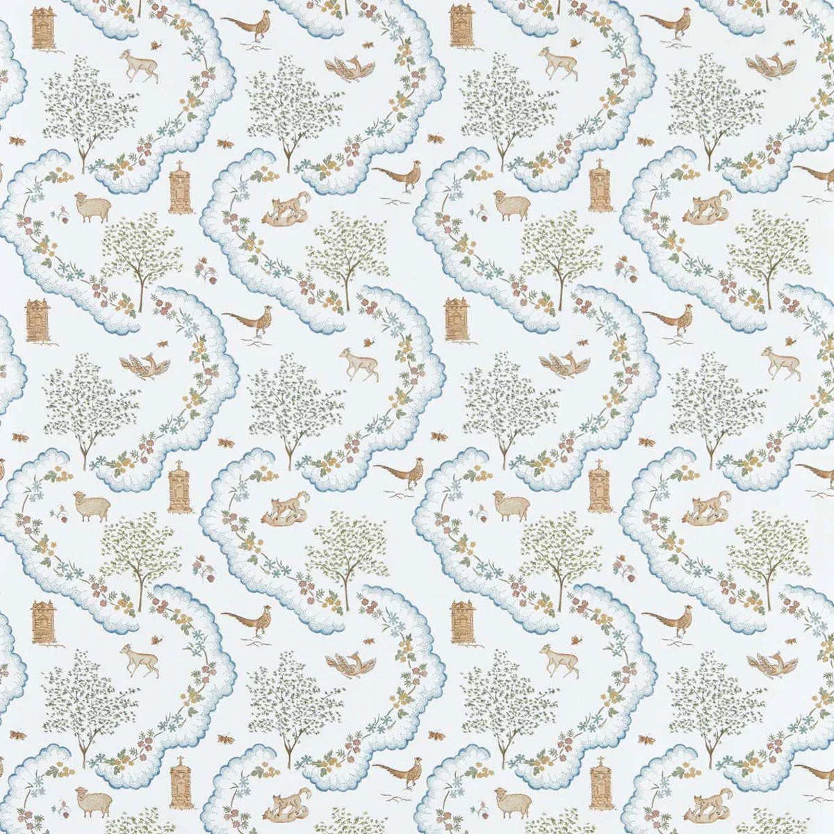 Highgrove's Wildflower Meadow has a vital role in supporting the diverse organic life of the garden. Following the discovery of a French archive document reminiscent of the Wildflower Meadow's meandering serpentine path, the artwork was adapted to include acer trees, Japanese maples and beehives, a gift from Fortnum & Mason that is of the utmost importance to the gardens' natural sustainability. Meadow flowers, including fritillaries, are joined by muntjac deer and sheep, who graze the meadow seasonally to aid with growth, mischievous foxes, and regal pheasants.