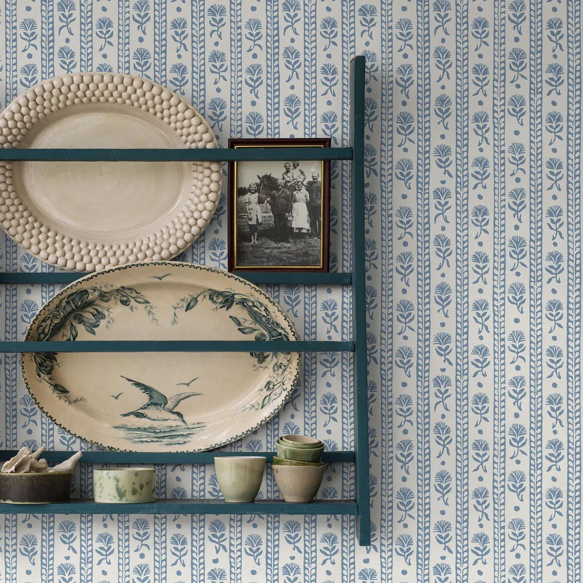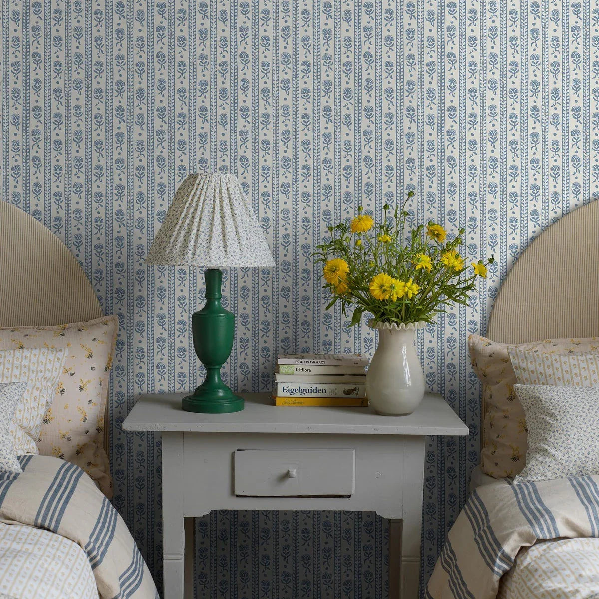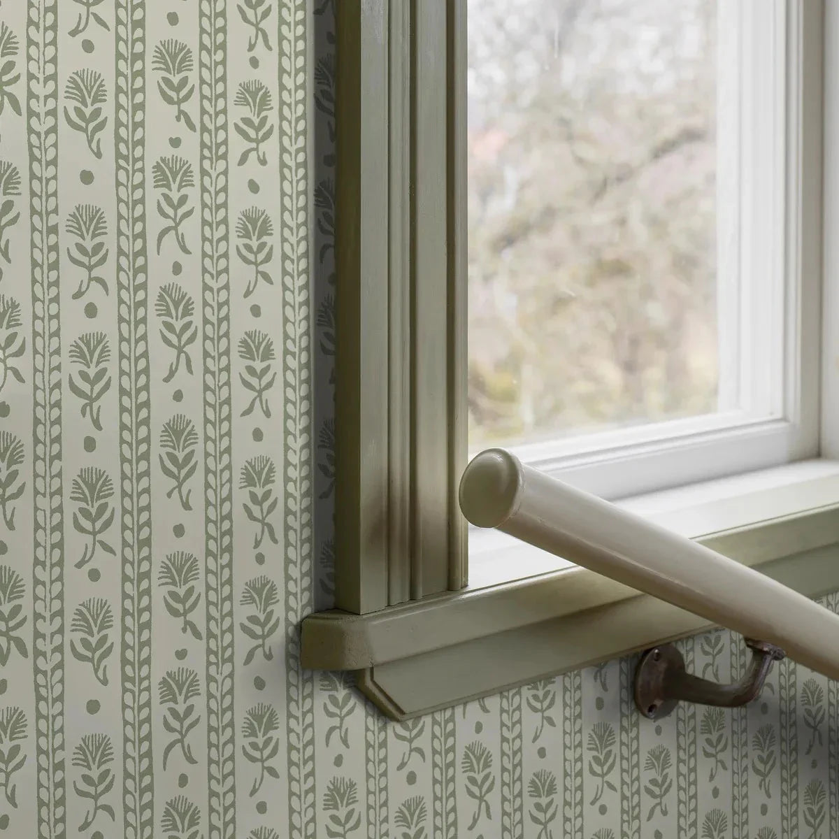 Originally dating back to the 18th century and inspired by Rococo design, our Nejlikerand wallpaper features graceful, stylised carnations arranged in an elegant stripe pattern. Adapted from a preserved printing block, this timeless design brings a sense of heritage and lightness to any space.