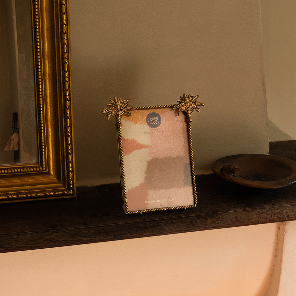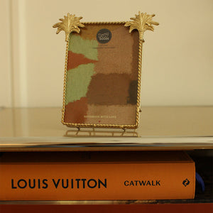 Immerse your cherished snapshots in the spirit of wanderlust with the Marlin Palm Picture Frame, a standout piece from the Sunray Souvenirs Collection. Ethically handcrafted in our Indian workshop, this picture frame is a testament to conscientious artisanship. Fashioned from recycled brass and glass, it echoes the commitment to sustainability and the artisanal ethos of Doing Goods. The frame's palm design, a gentle nod to tropical escapades, infuses each glance with the essence of road-trip adventures along sun-drenched coasts.