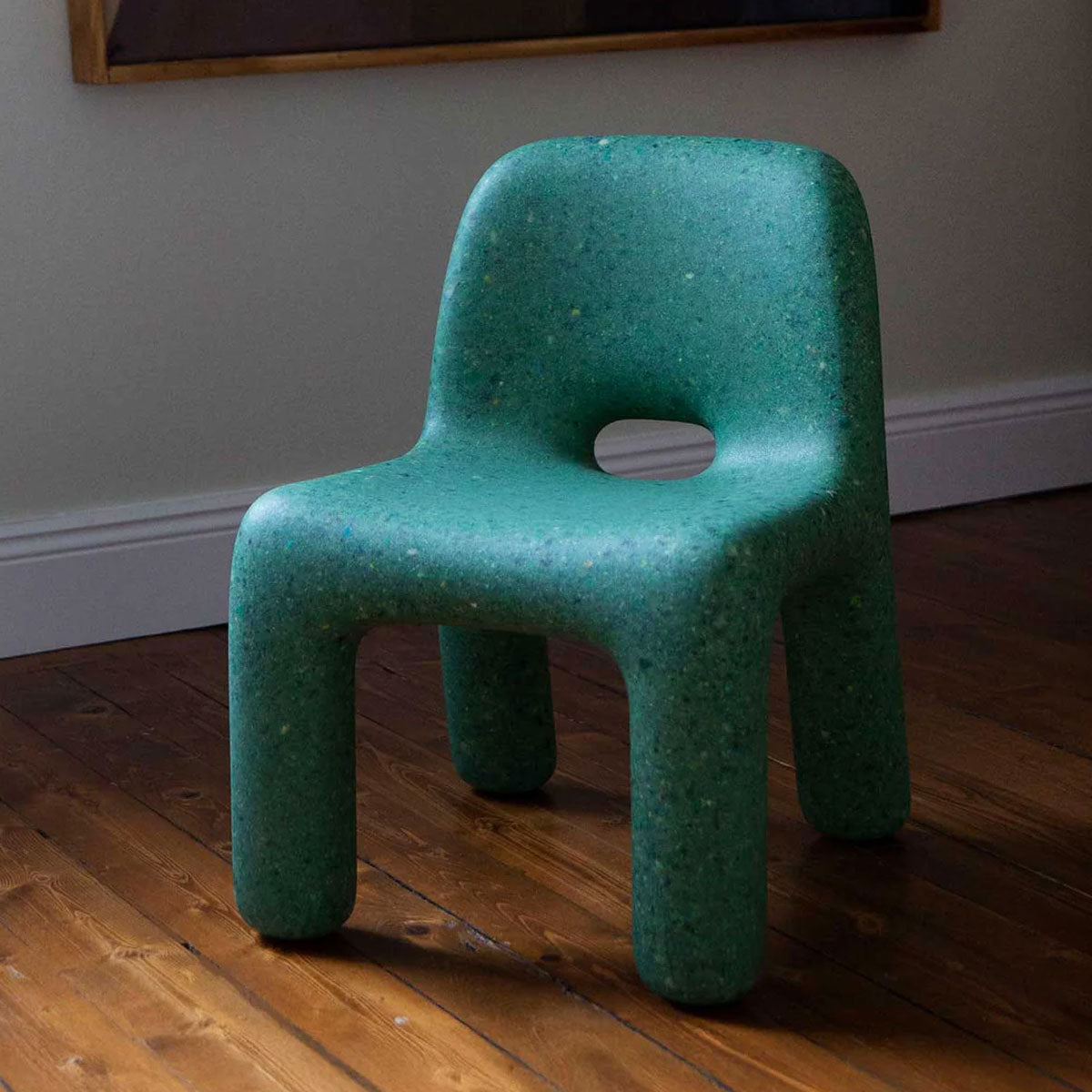 Recycled pieces of plastic toys are clearly recognizable and make up the distinctive speckled look. This makes Charlie a vivid eye-catcher and an educational piece for children. Charlie’s smooth silky surface is pleasant to the touch and easy to clean.
