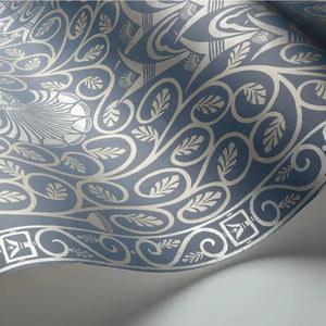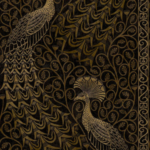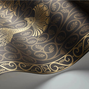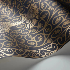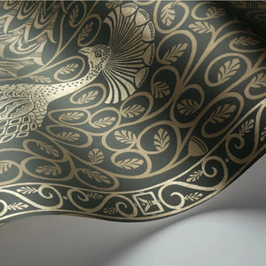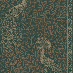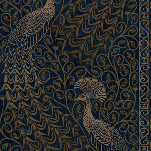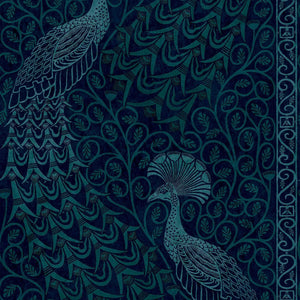 Taking its name from the peacock genus, Pavo Parade is an opulent host of metallic-toned peacocks. Their subtly ombred trailing tails pay homage to a technique pioneered by Cole & Son, whilst the subtle framing of the design creates a panel-like effect emphasising the birds' grandeur. Rich, lustred colourings of Metallic Silver on Denim; Metallic Bronze on Midnight; Metallic Gilver on Racing Car Green; Metallic Gold on Soot; as well as the arresting Metallic Petrol on Ink make this design a lavish interior option.