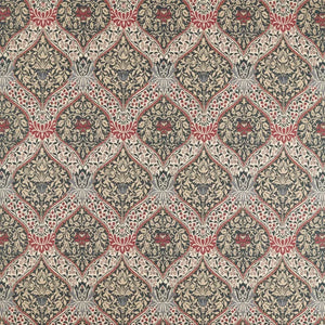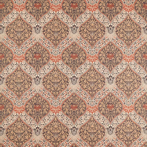 Named after Norbury Brook, a tributary of the River Wandle, the ogee-shaped design lends itself to the river’s ebb and flow. Originally a woven hanging in an ecclesiastical style, Norbury features a detailed floral border and leafy damask structure printed on a textural hemp blend base cloth in rich heritage colourways. This reinterpretation remains faithful to its woven beginnings. The combination of weave structure and contrasting yarns evokes a feeling of a treasured antique tapestry.