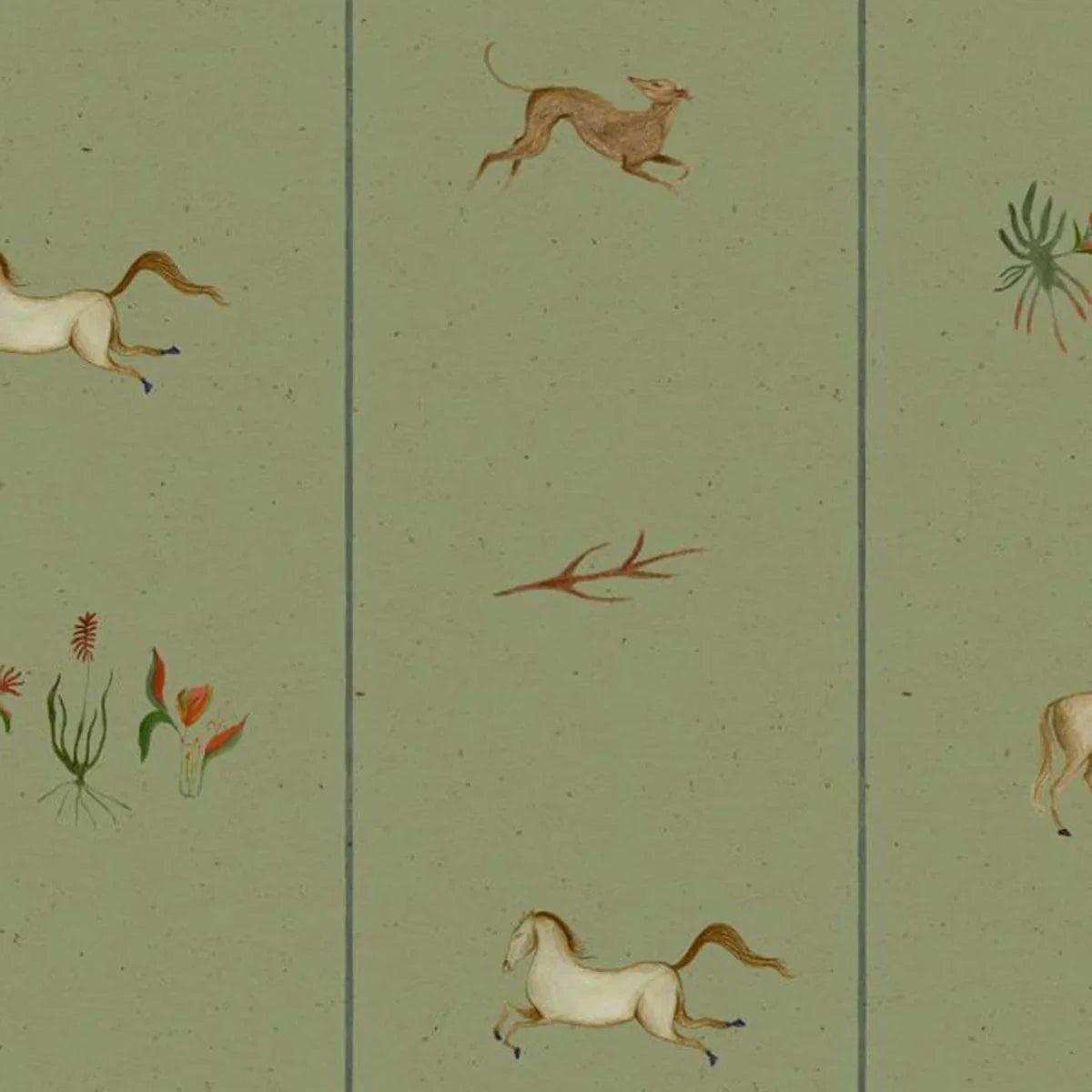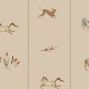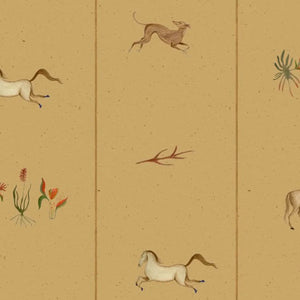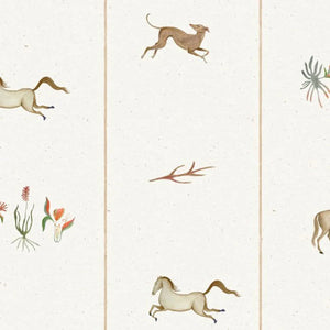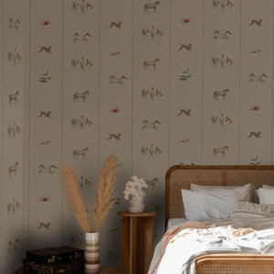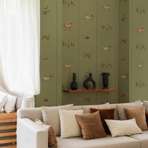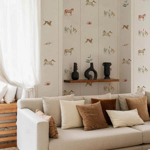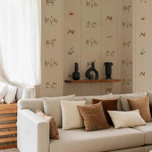 Bike Ride by Coordonne is inspired by cycling through enchanting locales, where every corner holds the promise of discovery. This design incorporates charming animal and plant motifs set amidst linear stripes, evoking a sense of adventure and whimsy.