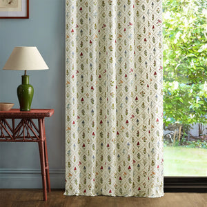 Inspired by the wildflower meadows of Brockhampton Estate, cared for by the National Trust, this mid to small-scale floral trellis design is painted in the delicate, intricate style of an Indian miniature painting. It delicately depicts Bee Orchids, Ragged Robins, Bluebells, and other native blooms, while the inclusion of Yellow Rattle reflects ongoing conservation work at Brockhampton, where sheep tread the seeds into the soil to encourage biodiversity.