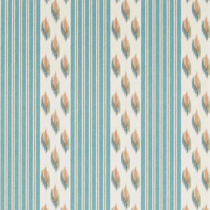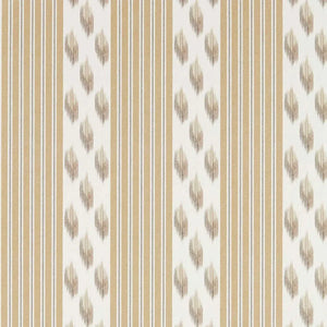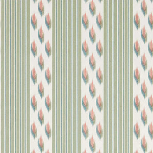 Musafir, meaning `traveller`, is an ikat warp-printed style mark alternating with a large stripe, inspired by an archive document. The ikat creates a play on a floral, like a flower bud. Musafir has been digitally printed to look like fabric on the wall.