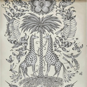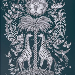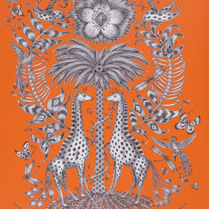 Intricately and hand-drawn jungle scenes are brought to life with the use of bold fashion colours and metallic highlights. This lively range of non-woven wallpaper is available in 8 striking designs, depicting dramatic colours and emphasising the intensity of the jungle. These can be used in conjunction with the Animalia Fabric range or as a vibrant choice for statement walls.