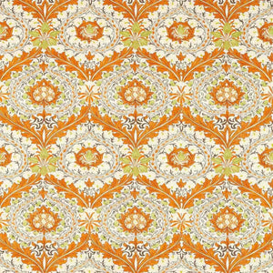Designed by John Henry Dearle in 1905, it features an ogival repeat of stylised pomegranates and tulips, surrounded by delicate flowers, apples and scrolling acanthus leaves.