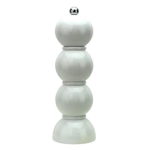 The mill is made from sustainably sourced rubber wood, finished with 8 coats of high gloss lacquer hand polished between each coat. Using a ceramic mechanism, the mill requires a clockwise motion to activate. The mills can be used for grinding either Rock Salt (Dry Salt Crystals) or Black Peppercorns. Not to be used for sea salt, wet salt, or dried wet salt or pink peppercorns.