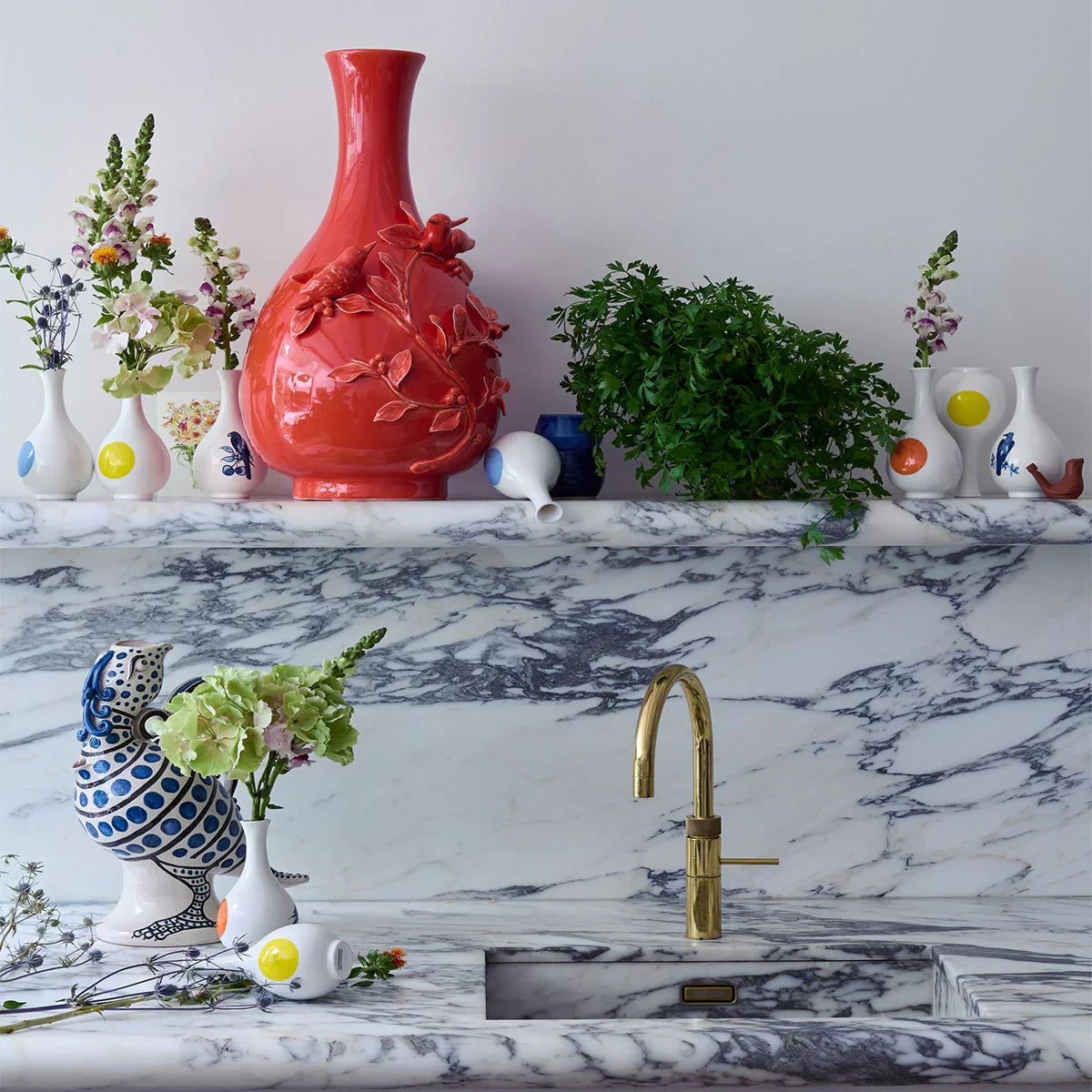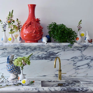 So here’s the story. We spotted a 17th-century vase and a panel of bird-patterned tiles at Rijksmuseum and from there on this took a flight. We decided to shrink the charm, glaze it up, and add a POLSPOTTEN twist. Enter the Small Bird Vase: a bold little dot that gives the classic shape a playful wink. Perfect for single stems, mini bouquets or just standing there being adorable. Comes in four rich colours: orange, blue, yellow and dark green. In collaboration with Rijksmuseum. Gift-boxed. Limited edition.